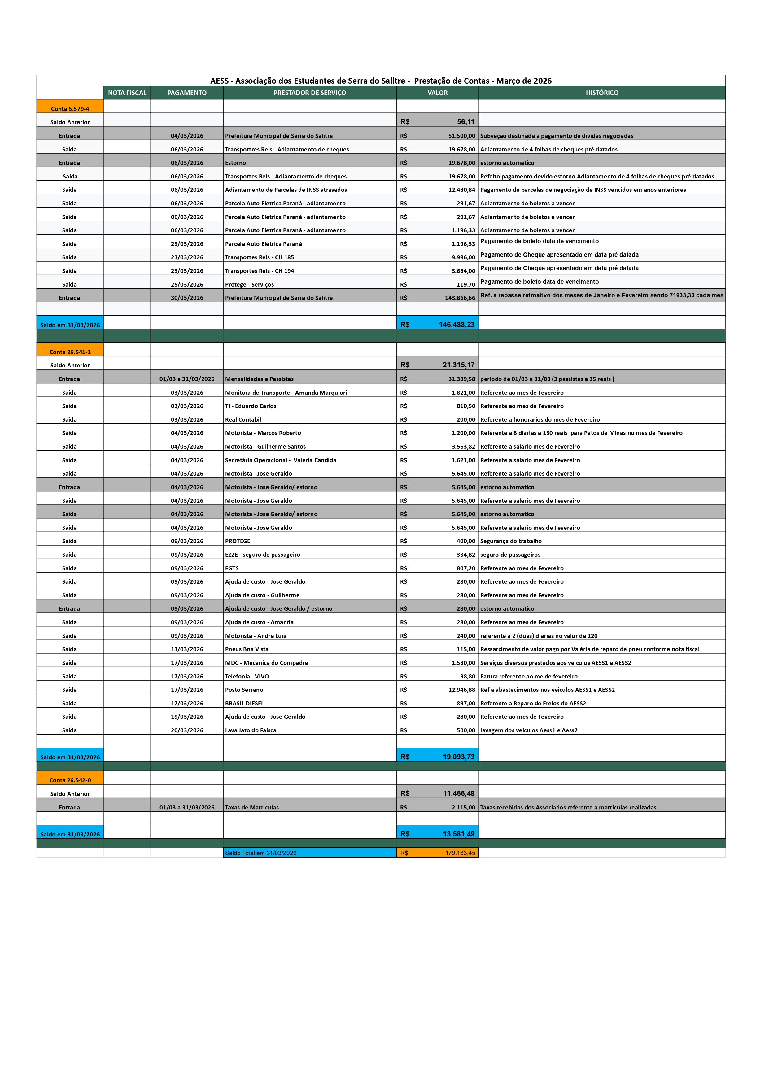 Prestação de Contas do Mês de Março de 2026
